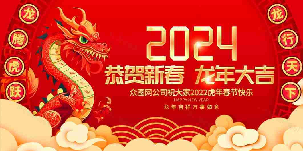 2024龙年海报展板 恭贺新春 龙年大吉PSD模板免费下载